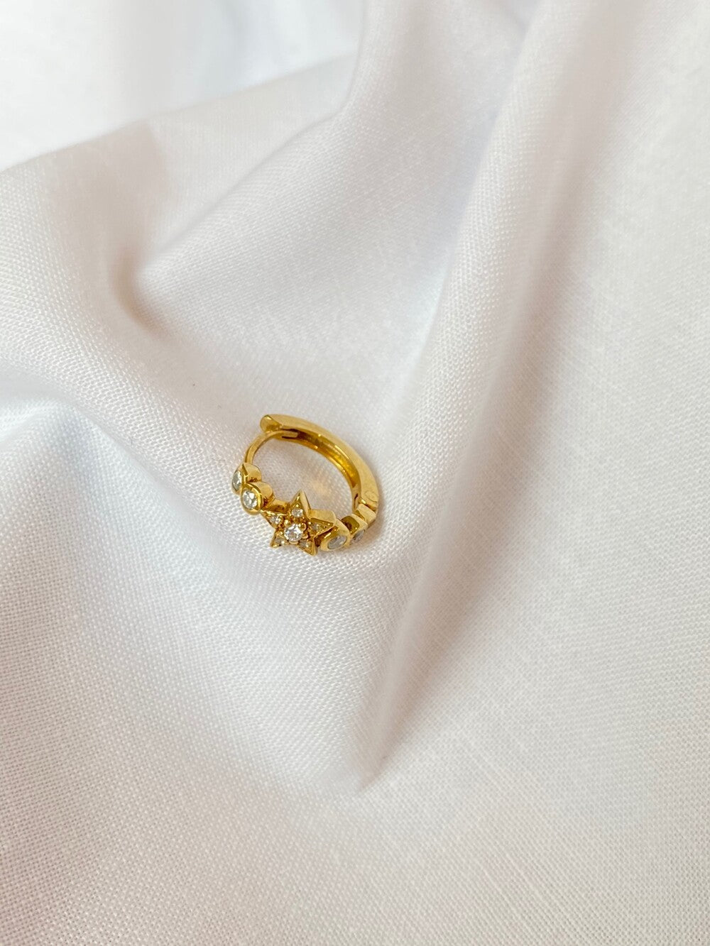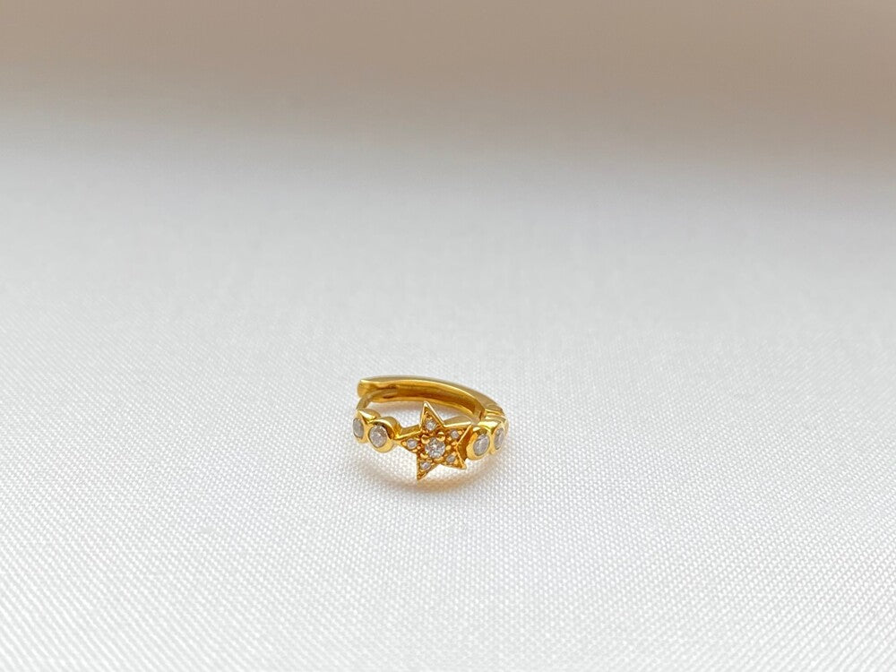 A unique single earring featuring tightly set cubic stones with a star-shaped cubic accent at its center.